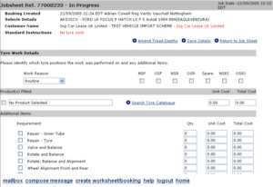 Select the tyre required, this will then take you back to the previous screen and where a total will be displayed. Extra work can be selected such as balancing or alignment and once all tyre work has been entered click on “Save Details”